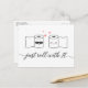 Need a wedding postponement announcement card to reschedule your 2020 wedding? This cute and funny toilet paper roll wedding couple is a fun way to announce your new or postponed wedding date. The front features the groom and bride as toilet paper rolls and the text "Just Roll With It." The back has all of your postponement details and room for a new date. Easy to mail postcard format.