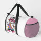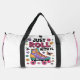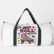 This white and pink duffle bag is perfect for roller skating enthusiasts and anyone embracing a positive attitude, featuring a vibrant roller skate design surrounded by colourful flowers, hearts, and butterflies, and the encouraging phrase "JUST ROLL WITH IT." It's an ideal accessory for carrying skates, gym gear, or for a fun, retro-inspired outing. Edit colour of the bag caps and body in the Design tool to your favored colours.