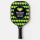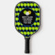 Fun JUST SINK THE DINK customisable pickleball paddle for men, women and children who love to play pickleball. The design shows a background pattern of lime green paddles, and inside the circle the wording reads DON'T FLASH THE SMASH JUST SINK THE DINK. This text is CUSTOMIZABLE so you can replace it with your choice, eg. your name, team name, motto, etc. This pickleball paddle is designed for pickleball moms, dads and kids who like playing as a pickleball team. Buy matching paddles for each person on your team or in your family. Choose from a wide selection of pickleball designs and gifts by Berean Designs.