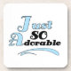 Just So Adorable T-shirts, bodysuits, bibs, blankets, burp cloths, magnets, stickers, bags, and other items with a blue and black text design.