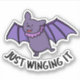 Just Winging It Funny Bat Pun features a cute bat flying. Funny Pun gift for family and friends who love batty puns.