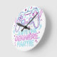 Keep track of your gaming sessions in style with this vibrant 'Juste une dernière partie' (Just one last game) wall clock. Featuring a sleek, retro-inspired video game controller in a stunning neon pink, blue, and purple palette, this clock is the perfect addition to any gaming room, bedroom, or office.