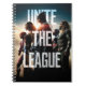 Check out the Justice League standing on the battlefield with the words "Unite The League" written over them.