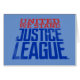 This patriotic Justice League graphic is tilted to the side and has the phrase "United We Stand" written on top of the Justice League logo.