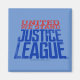 This patriotic Justice League graphic is tilted to the side and has the phrase "United We Stand" written on top of the Justice League logo.