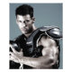 Bodybuilder Justin Woltering in hardcore football pose.
