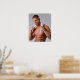 Four-colour photo poster of fitness expert Justin Woltering with towel around his neck.