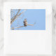 A juvenile bald eagle perched on a branch with a beautiful sky blue backround.