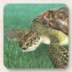 The coaster's design features a green turtle (a type of sea turtle) illustrated by artist Dawn Witherington.