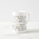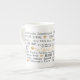 This elegant white/black/gold coffee cup describes the qualities needed for, and all the blessings of, pioneering.