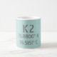Word art mug features K2, Mount Godwin-Austen, on the China - Pakistan border, latitude and longitude map coordinates in modern urban font