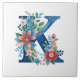 'K' blue monogram, ornate floral design, Ceramic Tile