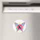 Pretty "K" logo features colourful butterfly wings and a halo of stars.