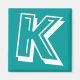 K magnet. Background colour and text can be customised..