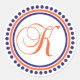 K Monogram (Blue / Orange Dot Circle) Classic Round Sticker