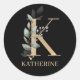 K Monogram Floral Personalised Classic Round Stick Sticker