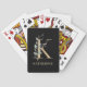 Letter K monogram floral. Letter K in golden brown texture accented with green watercolor compound leaves and berries and melted gold droplets. Personalised with name in matching font. Set on dark mineral green.