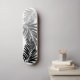 Black and grey. Kahanu Garden is located on the Hana Coast of Maui and hosts the largest native flora forests in the islands. Our design is oversized hand drawn palm leaves making up this bold graphic statement. The designs drops out to the natural maple of the board. This design comes in several colour ways.