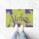Ultra violet and acid green colorway. The message of Aloha welcomes your visitors to your own tropical paradise. A beautiful modern illustration of hibiscus flowers done with a pen and ink technique. Inspired by the Hawaiian boardshorts and aloha shirts of the fifties and sixties. This design comes in several colorways. You can customise the message.