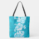 Turq tonal with white colorway. Kalakaua Avenue is the main boulevard that the runs through Honolulu near Waikiki Beach and Diamond Head. Our hibiscus border print design comes in several colorways.