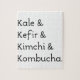 Kale, kefir, kimchi and kombucha text. Original text design.