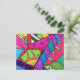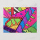 A vibrant,colourful postcard depicting the abstract art of PK Fairaday.