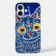 Cat iPhone case in a royal blue finish with unique kaleidoscope art style inspired by renowned painter Louis Wain