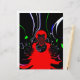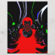 This artwork features a central, symmetrical design that radiates outward, characteristic of a kaleidoscope. The complex arrangement of fluid lines and shapes converges and diverges, creating an engaging focal point. The stark contrast between the black background and the vibrant red and white elements enhances the central design's visibility.