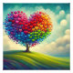This enchanting image features a vibrant tree with leaves composed of heart shapes in a rainbow of colours, symbolising the diversity and unity of love. Set against a whimsical backdrop of swirl-patterned skies, the heart leaves transition through a spectrum from cool blues to warm reds, creating a visual representation of a love that grows and changes. This artwork brings a touch of romance and colour to any space, making it perfect for gifts or decor that celebrates love in all its forms