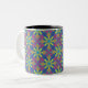 This coffee mug is a delightful throwback to the days of old kaleidoscopes with its bright colours and patterns. Designed from my own artwork, this will be a colourful way to start your day.