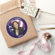 2024 Presidential election in the US. Kamala Harris 2024. Patriotic stickers with an American Flag in back of Kamala.