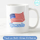 Kamala Harris for President Elegant Script US Flag Coffee Mug. For a Kamala Harris presidential campaign supporter design, a bold and empowering layout that combines typography and patriotic symbols to create a striking visual statement. At the centre of the design, feature Kamala Harris's name in large, elegant typography. Use a modern font to convey a sense of forward-thinking and progress. To enhance the design's visual appeal, add a subtle, polished finish with a shadow effect, giving the typography a sense of depth and dimension. This approach not only highlights Kamala Harris’s name but also ensures the flag’s colours and patterns stand out vibrantly. This product aims to celebrate Kamala Harris’s candidacy with a strong, patriotic flair, using typography and the U.S. flag to create a powerful, supportive statement for her presidential campaign.