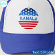 Kamala Harris Supporters Volunteers Elections 2024 Trucker Hat. For a Kamala Harris presidential campaign supporter design, a bold and empowering layout that combines typography and patriotic symbols to create a striking visual statement. At the centre of the design, feature Kamala Harris's name in large, elegant typography. Use a modern font to convey a sense of forward-thinking and progress. To enhance the design's visual appeal, add a subtle, polished finish with a shadow effect, giving the typography a sense of depth and dimension. This approach not only highlights Kamala Harris’s name but also ensures the flag’s colours and patterns stand out vibrantly. This product aims to celebrate Kamala Harris’s candidacy with a strong, patriotic flair, using typography and the U.S. flag to create a powerful, supportive statement for her presidential campaign.