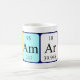 Kamari spelled out as K Am Ar I (Potassium Americium Argon Iodine) on a mug for the scientist in you.