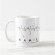 Kamila spelled out in amino acids as K A M I L A (Lysine Alanine Methionine Isoleucine Leucine Alanine) on a mug for the scientist in you.
