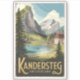 Kandersteg retro vector travel design. Kandersteg is a high-altitude resort village in the Bernese Oberland region of Switzerland. Trails, like the challenging Allmenalp, and a cable car head east to Lake Oeschinen.