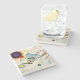 The coasters are gorgeous, a quality feel and heavy weight. They look like a precious archeological find. A rustic stone juxtaposed with a modern floral black and white print. I like the way the print goes slightly imperfect on the cut stone edges giving them a kind-of natural beauty.