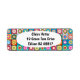 These return address labels have a Kandinsky-inspired design of concentric circles in many different colours repeating across the design.