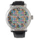 This men's watch has a Kandinsky-inspired design of concentric circles in many different colours repeating across the design.
