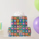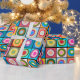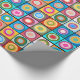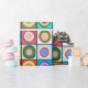 This wrapping paper has a Kandinsky-inspired design of concentric circles in many different colours repeating across the design.
