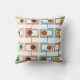 This throw pillow has a Kandinsky inspired mid-century modern design of sets of rectangles formed by a continuous line each with an oval inside in retro colours of orange, brown, gold, and turquoise on a white background. If you like the design but prefer different colours, message me.