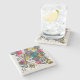 The coasters are gorgeous, a quality feel and heavy weight. They look like a precious archeological find. A rustic stone juxtaposed with a modern floral black and white print. I like the way the print goes slightly imperfect on the cut stone edges giving them a kind-of natural beauty.