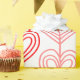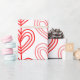 This wrapping paper has a Kandinsky inspired design of sets of hearts made by a continuous red or pink line repeating and staggered across the design on a field of white. If you like the design but prefer different colours, message me.