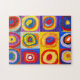 Kandinsky Circles puzzle. Oil painting on canvas. One of Russian artist Wassily Kandinsky famous circle paintings, this version features a beautiful collection of abstract circles with vibrant oranges, yellows, purples, blues and reds. A great gift for fans of Kandinsky, abstract paintings, and fine art.