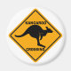 Traditional kangaroo crossing road sign as seen in the Australian outback. Yellow and black diamond-shaped warning sign.