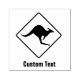 Diamond shaped, yellow kangaroo warning sign. Custom text.