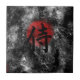 The Japanese Kanji script symbol for the word samurai against a red sun adds oriental flare to this heavily textured grunge-style artwork.