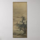 This is a 15th century colour print by Japanese artist Kano Masanobu. In it he depics a chinese sage Zhou Maoshu getting ferried on a canoe across a river. The wise sage takes his time to enjoy the lotus flowers on the river. They've only just started crossing the river, we can see they're still under the shade of the willow like tree. The colours used are very mellow, different shades of green, brown and grey were used.