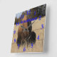A shot of a Kansas Buffalo in a Pasture with tree's and brown grass that's east of