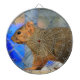 A shot of a Wild Red Fox Tail Squirrel shot closeup that's bright and colourful with a blue back ground. Thats on a ProfiledInk Dart Board.